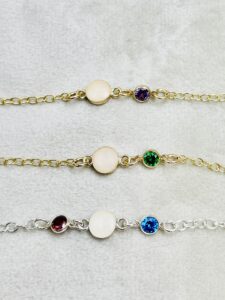 Je mag mij mailen over een armband met bij voorbeeld 2 of 3 steentjes. Dit zal binnenkort ook in de webshop komen te staan. Ook verder zijn er kettingen met geboortesteentjes te maken. Je kunt een hanger uit de webshop zoeken en aangeven welke geboortesteen je erbij wilt.